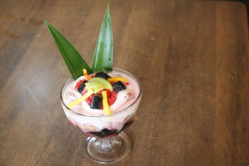 Penggunaan sirup merah atau sirup vanila juga kerap digunakan untuk penambah manisnya.